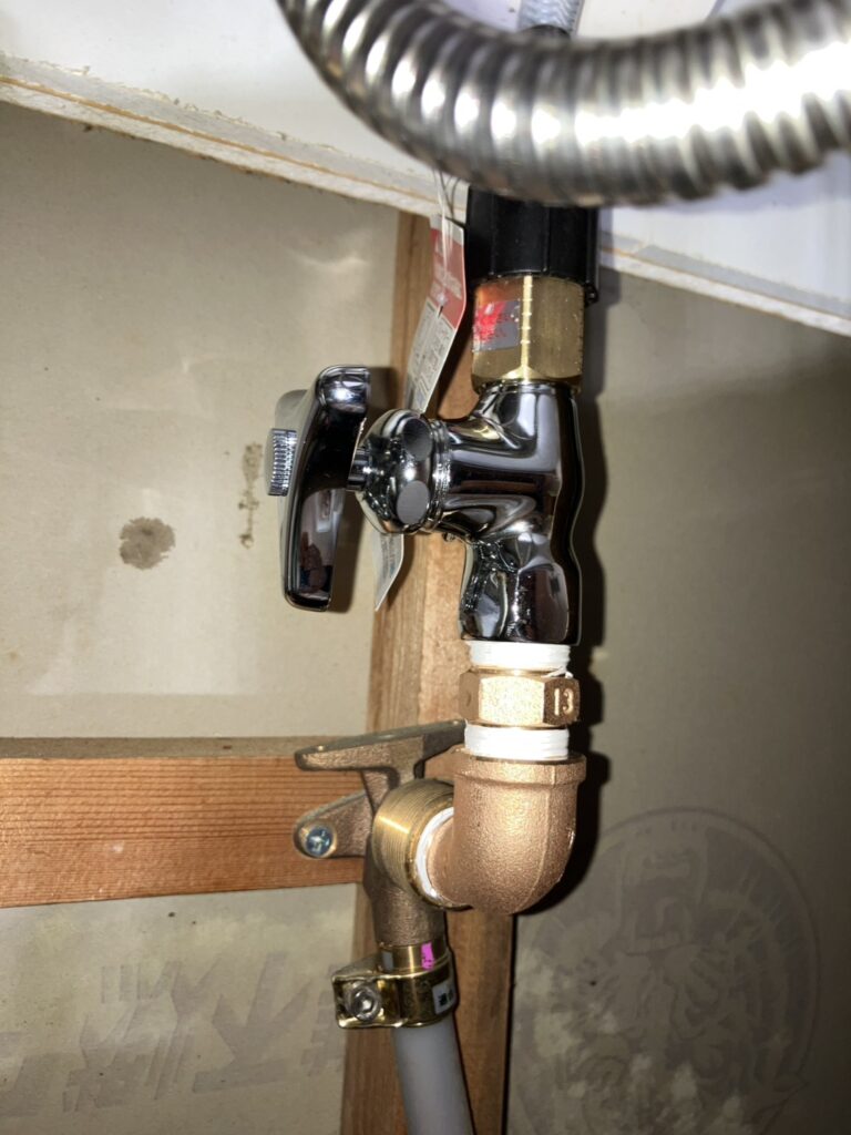 給水の止水栓下部から水がにじんでいます。拭いても更にじわっと。。。(-_-;)